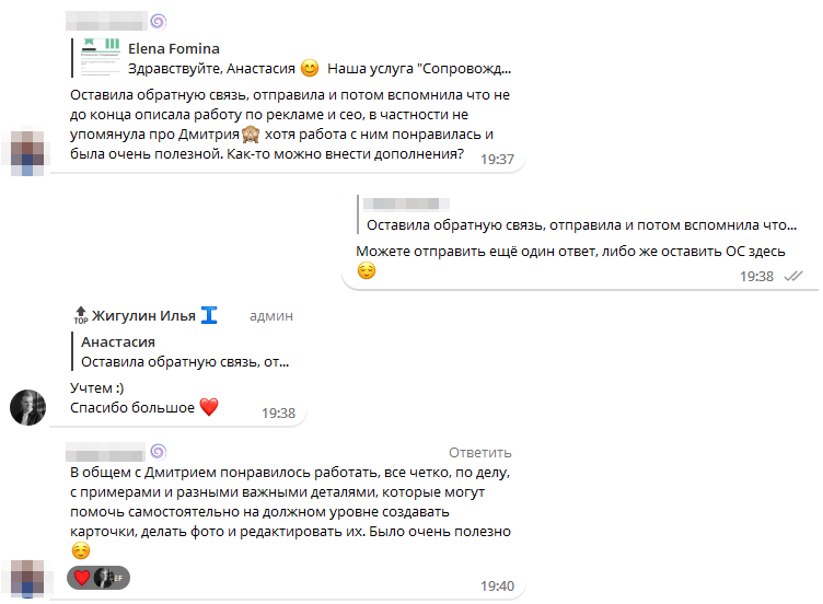 Оставила обратную связь, отправила и потом вспомнила что не до конца описала работу по рекламе и сео, в частности не упомянула про Дмитрия🙈 хотя работа с ним понравилась и была очень полезной. Как-то можно внести дополнения?