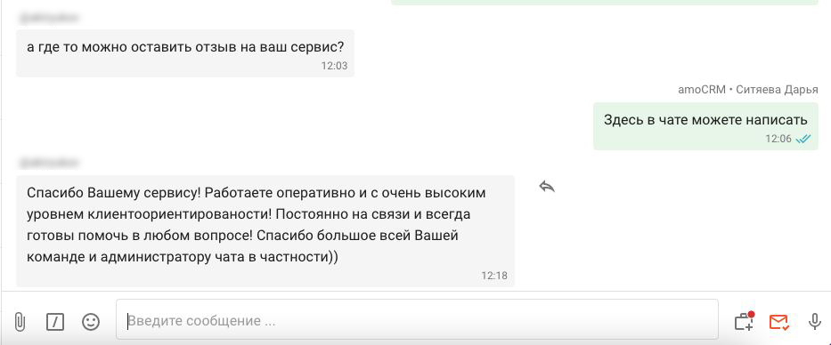 Спасибо Вашему сервису! Работаете оперативно и с очень высоким уровнем клиентоориентированости!