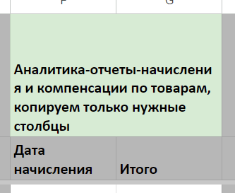 Следующий отчет для продаж, а точнее он на Озоне включает всё: продажи и услуги маркетплейса называется “начисления и компенсации по товарам”. Его также скачайте на нужную дату или диапазон и скопируйте только 1ый и последний столбец, вставьте строго под нужными ячейками.